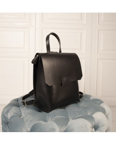 Корпус виготовлено з натуральної шкіри українського виробництва. Основне відділення закривається на кришку-клапан та магніт. Всередині одне відділення та дві кишеньки з фетру для ключів/телефону/дрібничок/планшету.