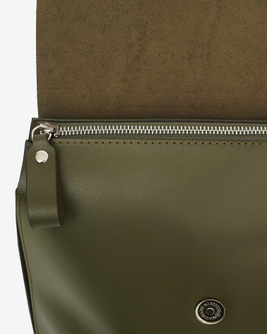 Корпус виготовлено з натуральної шкіри українського виробництва. Основне відділення закривається на кришку-клапан та магніт. Всередині одне відділення та дві кишеньки з фетру для ключів/телефону/дрібничок/планшету.