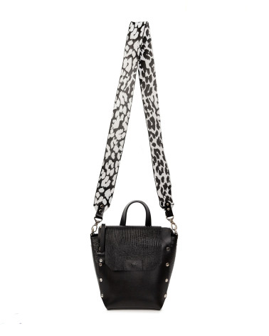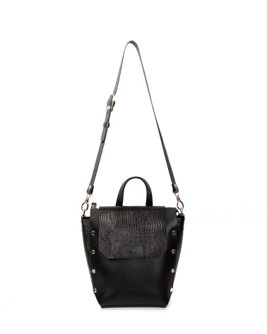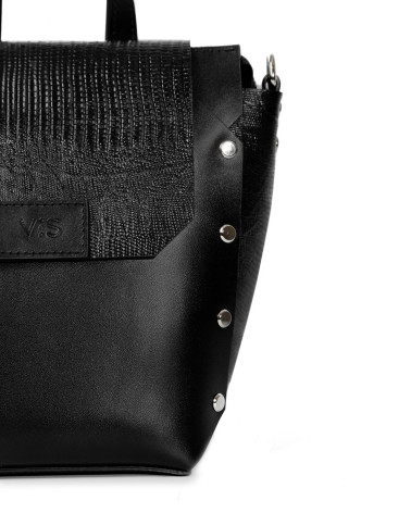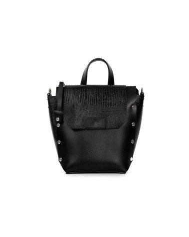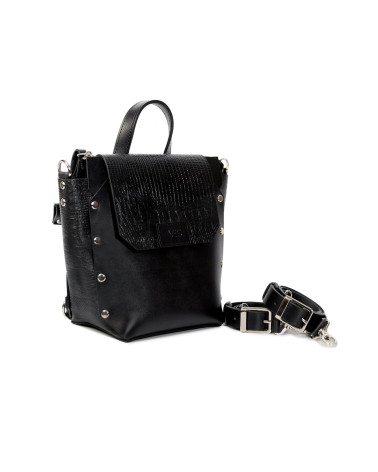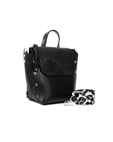 На фото Адара:рюкзак у поєднанні чорної гладкої та структурної шкіри.