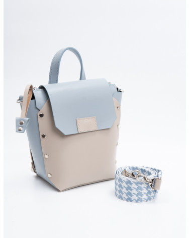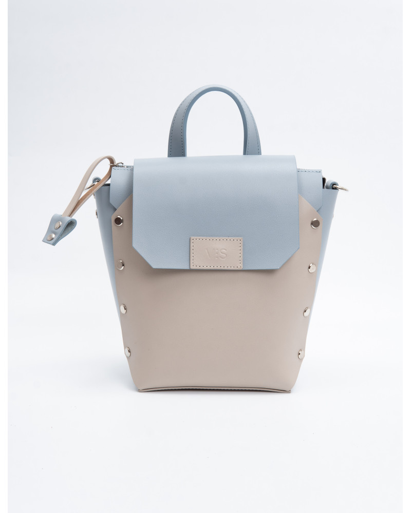 На фото Адара:рюкзак у поєднанні блакитного та кольору айворі.