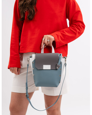 Корпус виготовлено зі шкіри українського виробництва. Основне відділення закривається на блискавку, кришку-клапан та магніт. Всередині рюкзака одне відділення та кишеня з фетру. Зовні рюкзак доповнено короткою ручкою, яка дозволяє носити його у руці. Також у комплекті є три довгі ручки. За допомогою широкої ручки зі щільної стрічки ви можете легко трансформувати рюкзак у сумку (для цього використовуються кріплення на бокових стінках рюкзака).Крім того, використовуючи дві інших ручки зі шкіри та кріплення на задній стінці рюкзака, ви можете носити його як рюкзак. Ці функції стають досить доречними у людних місцях.