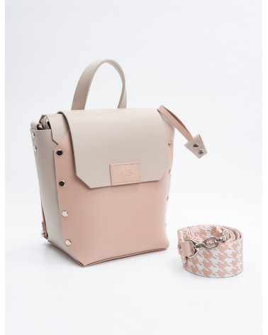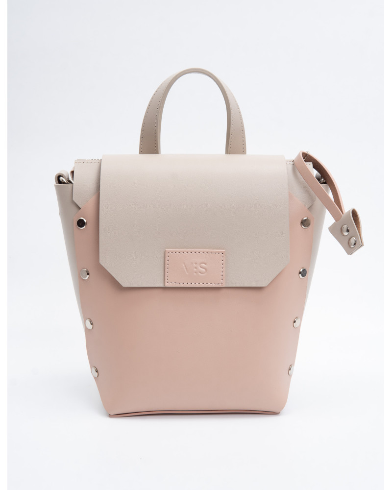 На фото Адара:рюкзак у поєднанні пудрового та кольору айворі.