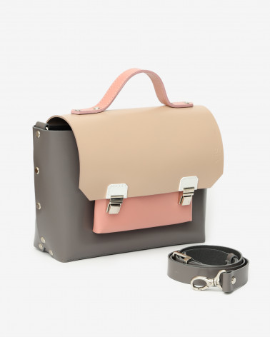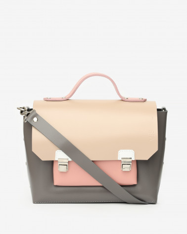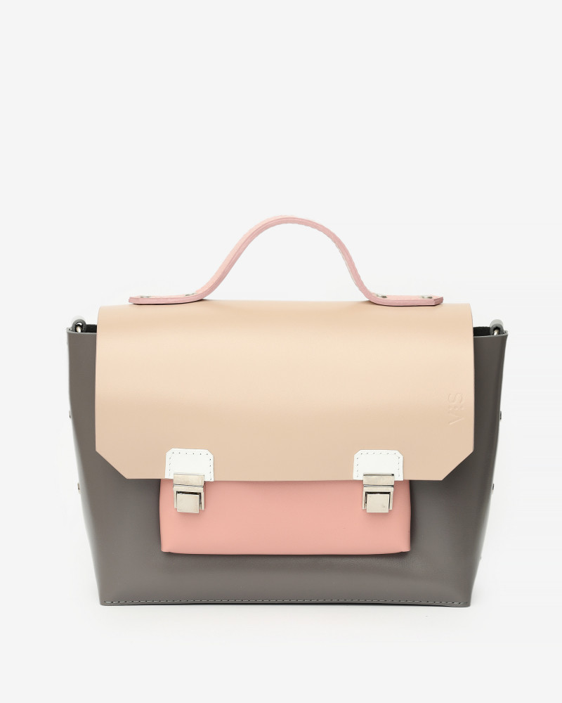 На фото Фомальгаут:портфель у поєднанні сірого, рожевого, білого та пудри.