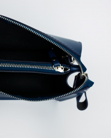 Корпус виготовлено з натуральної шкіри українського виробництва. Всередині сумочки три відділення, м'яка кишеня з фетру для ключів/телефону/дрібничок та відділення на блискавці для найпотаємнішого. Основне відділення закривається на блискавку. У комплекті є зйомна довга ручка, виготовлена зі шкіри.