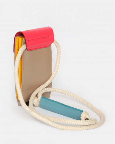 Ми створили цю сумку для порятунку світу. По-перше, це сумка для телефону, що має два відділення. По-друге, вона швидко трансформується у сумочку на талії та надзвичайно витончено її підкреслює. По-третє, більше не доведеться довго та нервово шукати телефон. Він буде поруч та йому там буде затишно. По-четверте, це зручна "друга" сумочка, що буде пасувати до вашої основної сумочки чи наплічника. По-п'яте, цей ремінь-шнур. Він створений для маленьких милих дрібниць, на кшталт кейса для навушників чи гаманця.