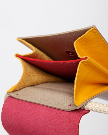 Корпус виготовлено зі шкіри українського виробництва. Основне відділення закривається на кришку-клапан та кнопку. Всередині сумочки два відділення. Ми рекомендуємо використовувати одне відділення сумочки для телефону, а друге у якості гаманця/ кейсу для павербанку/ карток, ключів, документів. У комплекті є ручка-шнур, яка дозволяє досить зручно носити сумочку crossbody чи, змінюючи довжину ременю, підкреслювати талію.
