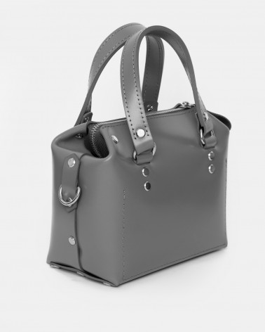 Корпус виготовлено з натуральної шкіри українського виробництва. Всередині одне відділення та кишенька з фетру. За допомогою коротких ручок ви можете носити сумочку у руці, що додасть вашому образу особливого шарму. У комплекті є зйомна довга ручка. За бажанням вона може бути виготовлена повністю зі шкіри чи у поєднанні з ланцюжком.