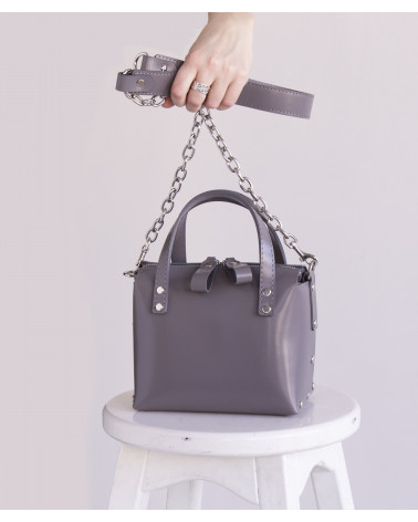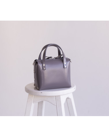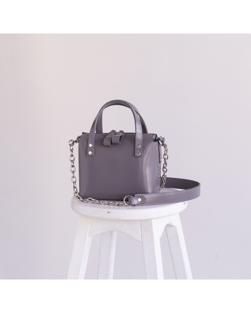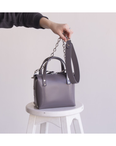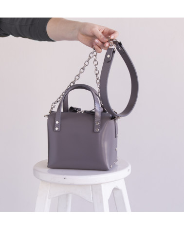 Корпус виготовлено з натуральної шкіри українського виробництва. Основне відділення закривається на блискавку. Всередині сумочки одне відділення та кишенька з фетру. За допомогою коротких ручок ви можете носити сумочку у руці, що додасть вашому образу особливого шарму. У комплекті є зйомна довга ручка. За бажанням вона може бути виготовлена повністю зі шкіри чи у поєднанні з ланцюжком.