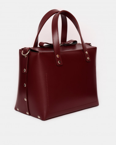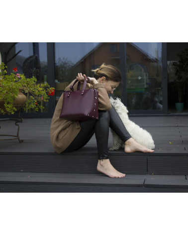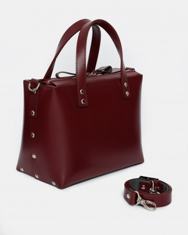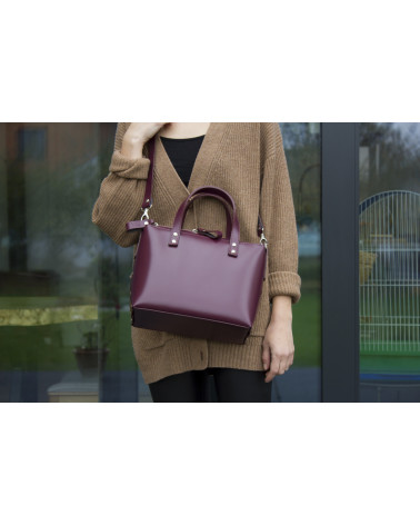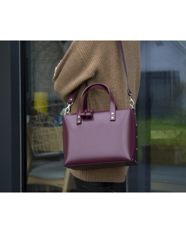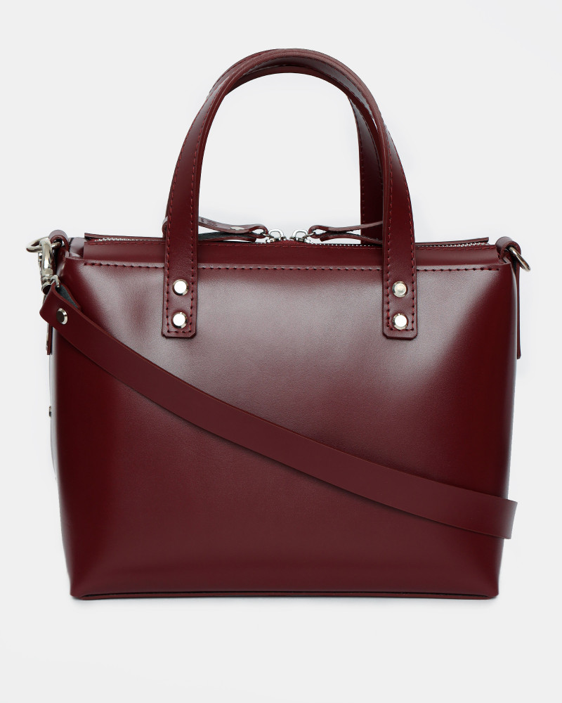 Корпус виготовлено з натуральної шкіри українського виробництва. Основне відділення закривається на блискавку. Всередині сумочки одне відділення та дві кишеньки з фетру для ключів/телефону/дрібничок. Потовщене дно сумки дозволяє впевнено стояти при будь-яких умовах та на будь-якій поверхні. У комплекті є зйомна довга ручка. За бажанням вона може бути виготовлена повністю зі шкіри чи у поєднанні з ланцюжком.