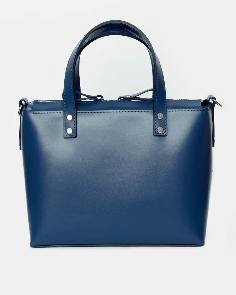 Корпус виготовлено з натуральної шкіри українського виробництва. Основне відділення закривається на блискавку. Всередині сумочки одне відділення та дві кишеньки з фетру для ключів/телефону/дрібничок. Потовщене дно сумки дозволяє впевнено стояти при будь-яких умовах та на будь-якій поверхні. У комплекті є зйомна довга ручка. За бажанням вона може бути виготовлена повністю зі шкіри чи у поєднанні з ланцюжком.
