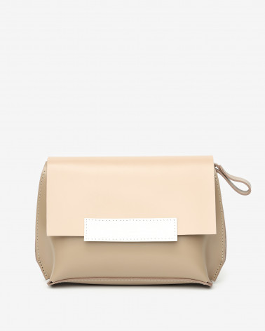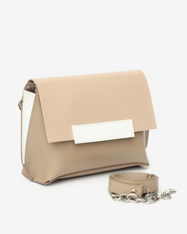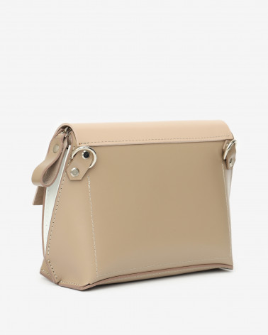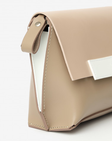 На фото Бернард:портфель у поєднанні білого, бежевого та пудрового кольорів.