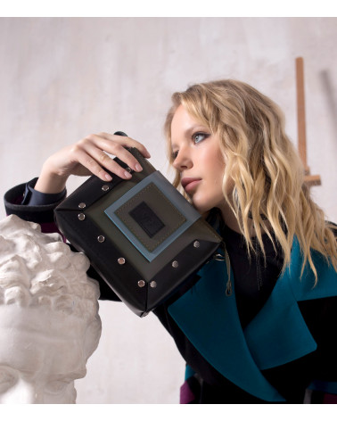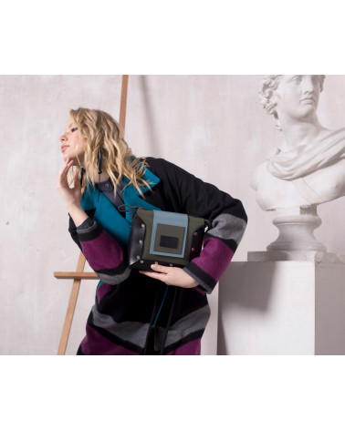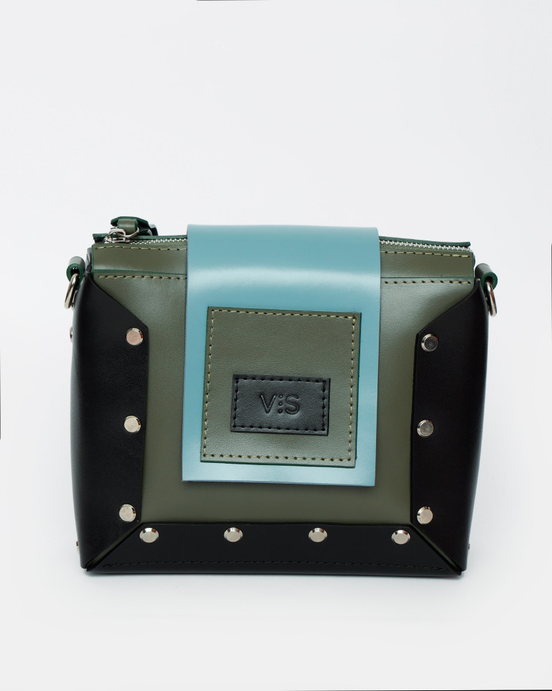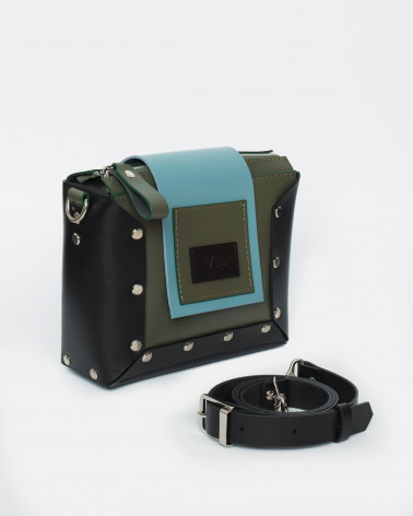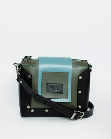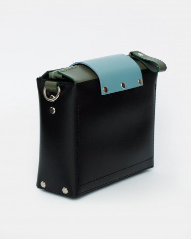 На фото поєднання Саїф:портфель:міні у поєднанні чорної, блакитної та оливкової шкіри..