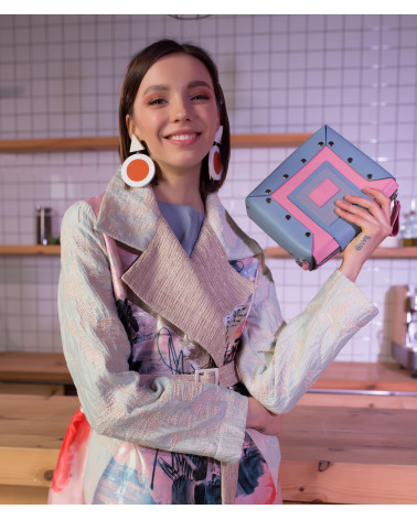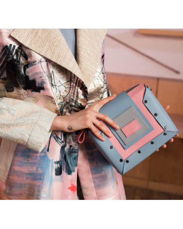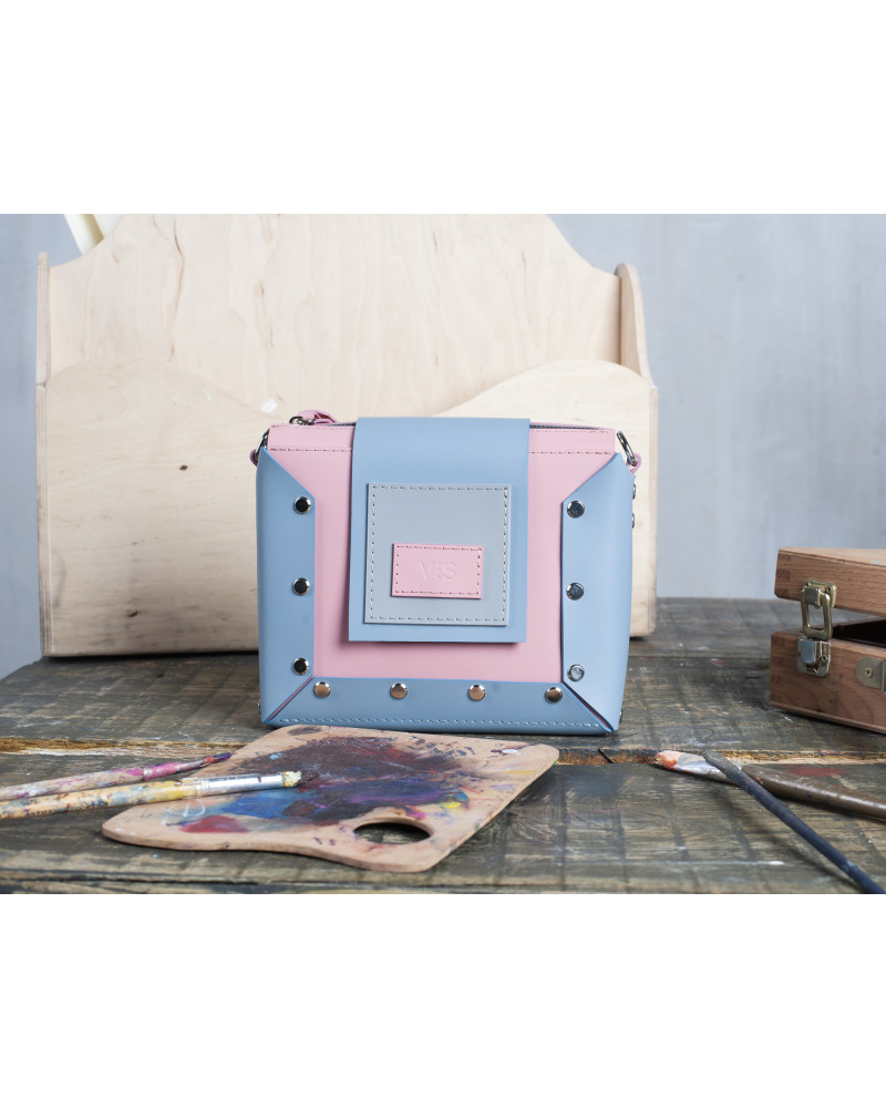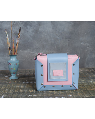 На фото поєднання Саїф:портфель:міні у поєднанні рожевої, блакитної та сірої шкіри.