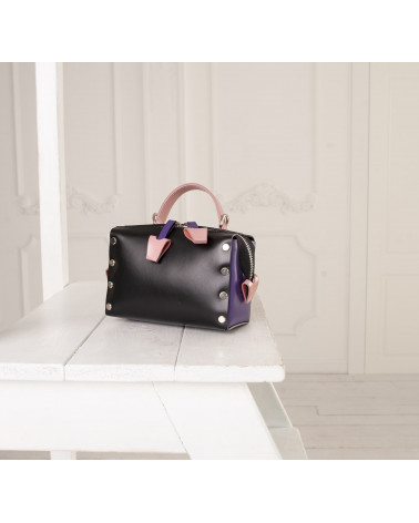 Корпус виготовлено з натуральної шкіри українського виробництва. Основне відділення закривається на блискавку. Всередині сумочки одне відділення, кишенька з фетру для ключів/телефону/дрібничок. Антарес:блискавку доповнено боковими стопорами, що дозволяють додатково захистити вміст від вологи чи випадіння.
