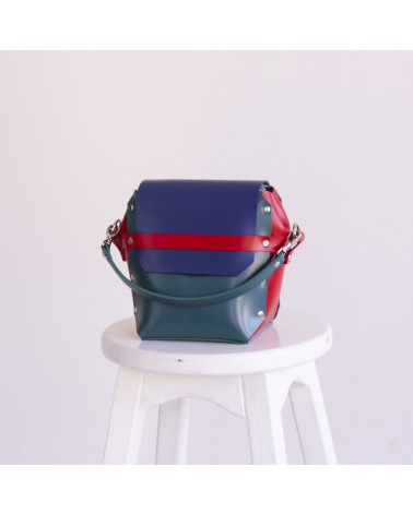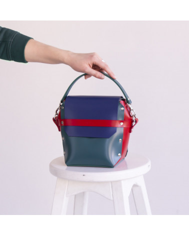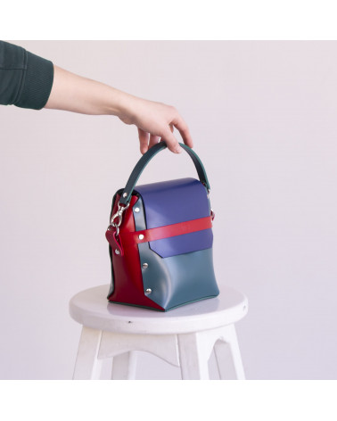 Корпус виготовлено з натуральної шкіри українського виробництва. Основне відділення закривається на кришку-клапан та блискавку. За допомогою гнучкої короткої ручки сумку зручно носити на руці чи перепліччі. Всередині сумочки одне відділення та кишенька з фетру для телефону/ключів/різних дрібниць. За допомогою гнучкої зйомної короткої ручки сумку зручно носити у руці чи на предпліччі. У комплекті є довга зйомна ручка.