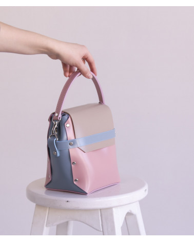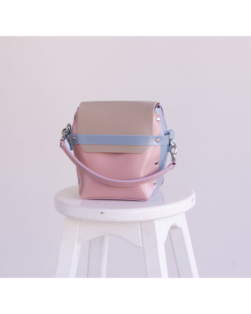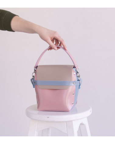 На фото поєднання блакитного, рожевого та бежевого кольорів.
