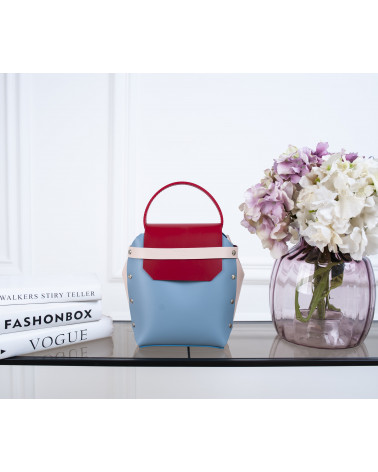 Корпус сумочки виготовлено з натуральної шкіри українського виробництва. Основне відділення закривається на кришку-клапан. За допомогою короткої ручки, сумку зручно носити у руці чи на передпліччі. Всередині - одне відділення та кишеня з фетру для ключів/телефону/дрібничок. У комплекті є зйомна довга ручка, виготовлена зі шкіри.