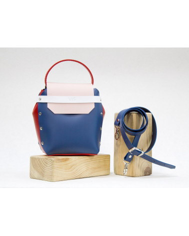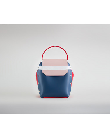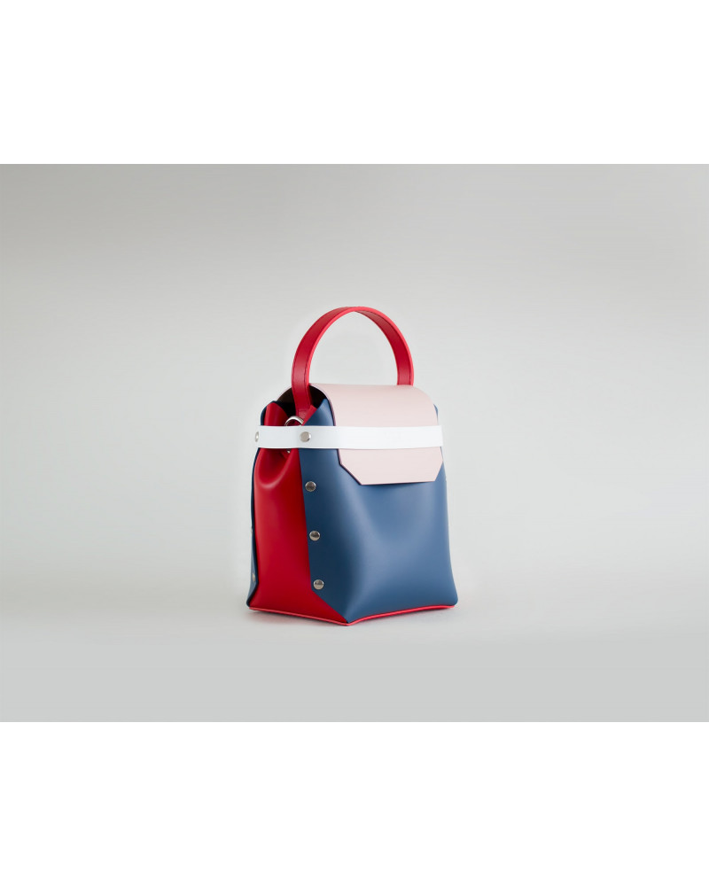 На фото Адара:сумка у поєднанні рожевого, синього, червоного та білого кольорів.