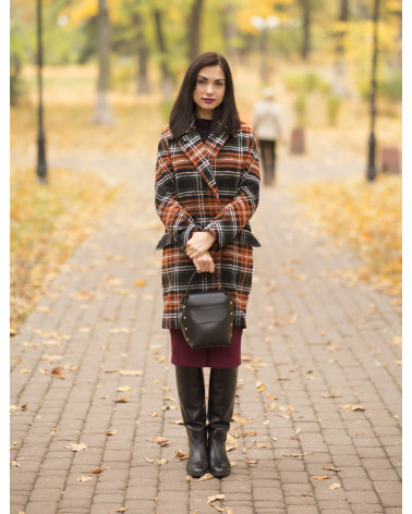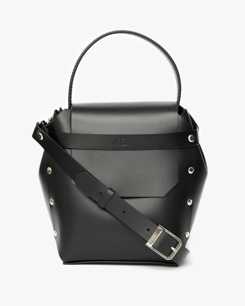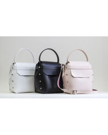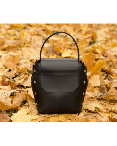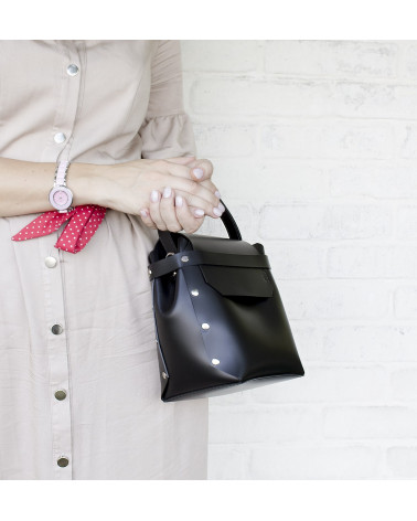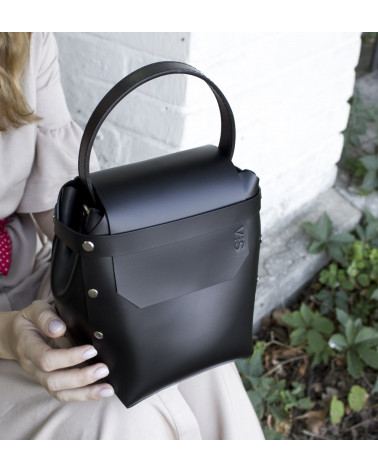 Корпус сумочки виготовлено з натуральної шкіри українського виробництва. Основне відділення закривається на кришку-клапан. За допомогою короткої ручки, сумку зручно носити у руці чи на передпліччі. Всередині - одне відділення та кишеня з фетру для ключів/телефону/дрібничок. У комплекті є зйомна довга ручка, виготовлена зі шкіри.
