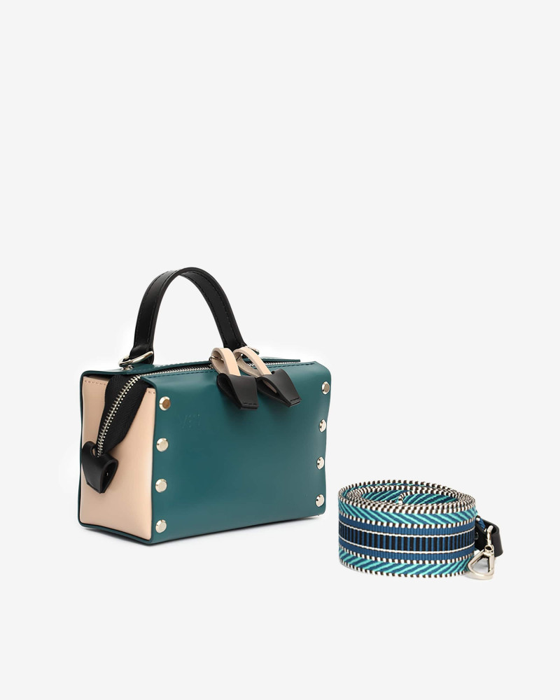 На фото поєднання смарагдового, пудрового та чорного кольорів.