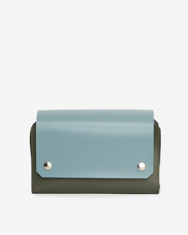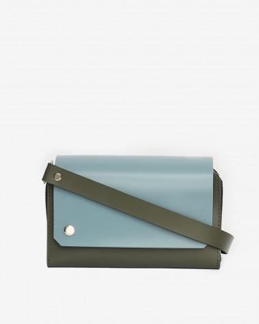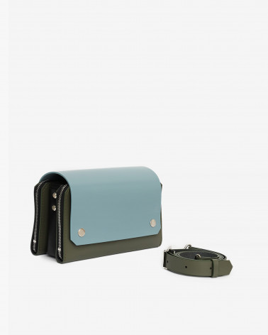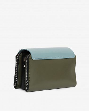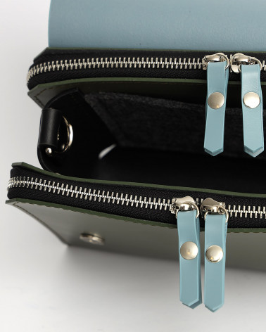 На фото Нави:сумка у поєднанні чорного, блакитного та оливкового кольорів.