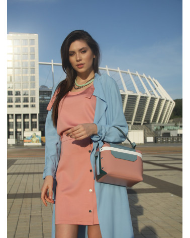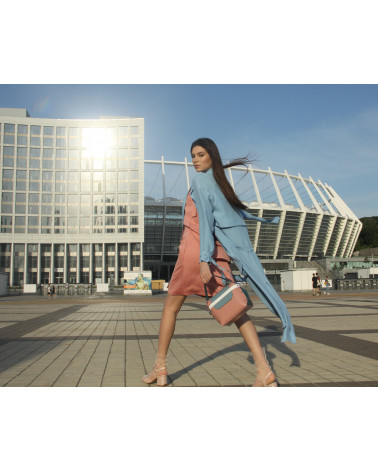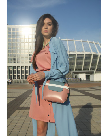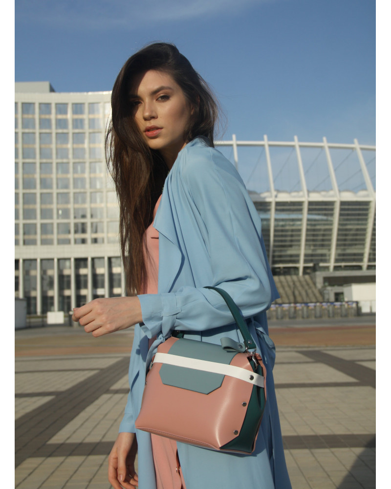 Корпус виготовлено з натуральної шкіри українського виробництва. Основне відділення закривається на кришку-клапан та блискавку. За допомогою гнучкої короткої ручки сумку зручно носити на руці чи перепліччі. Всередині сумочки одне відділення та кишенька з фетру для телефону/ключів/різних дрібниць. За допомогою гнучкої зйомної короткої ручки сумку зручно носити у руці чи на предпліччі. У комплекті є довга зйомна ручка.