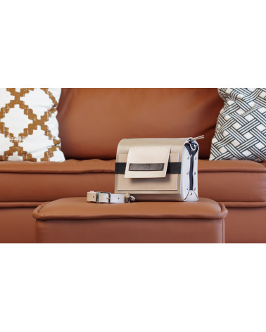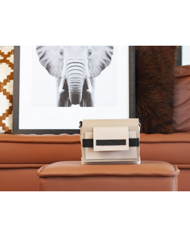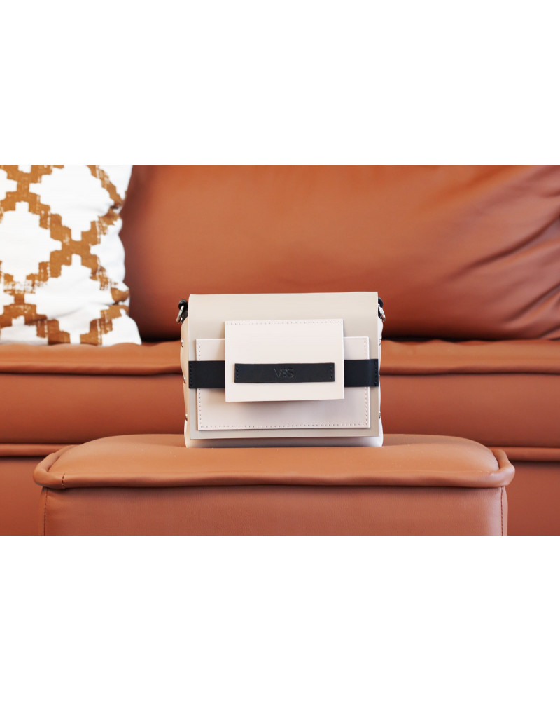 На фото Саїф:портфель у поєднанні бежевого, пудрового, чорного кольорів.