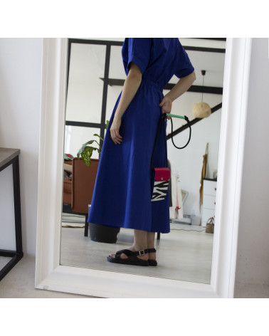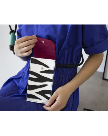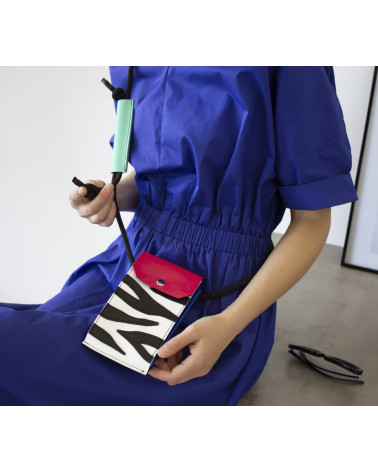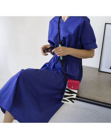 Ми створили цю сумку для порятунку світу. По-перше, це сумка для телефону, що має два відділення. По-друге, вона швидко трансформується у сумочку на талії та надзвичайно витончено її підкреслює. По-третє, більше не доведеться довго та нервово шукати телефон. Він буде поруч та йому там буде затишно. По-четверте, це зручна "друга" сумочка, що буде пасувати до вашої основної сумочки чи наплічника. По-п'яте, цей ремінь-шнур. Він створений для маленьких милих дрібниць, на кшталт кейса для навушників чи гаманця.