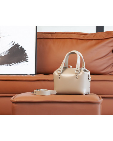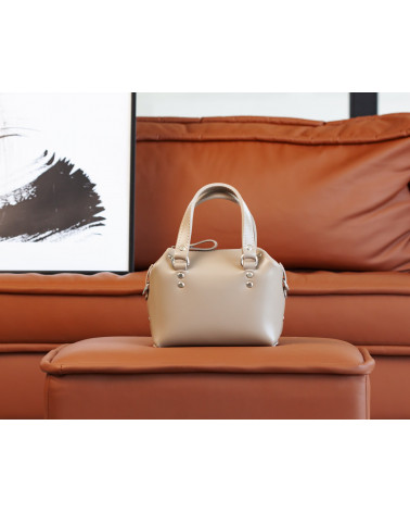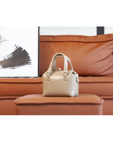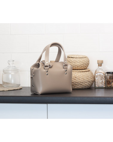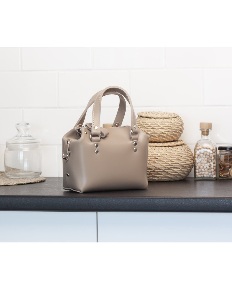 Корпус виготовлено з натуральної шкіри українського виробництва. Всередині одне відділення та кишенька з фетру. За допомогою коротких ручок ви можете носити сумочку у руці, що додасть вашому образу особливого шарму. У комплекті є зйомна довга ручка. За бажанням вона може бути виготовлена повністю зі шкіри чи у поєднанні з ланцюжком.