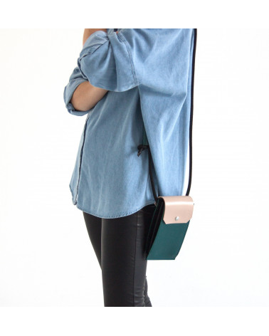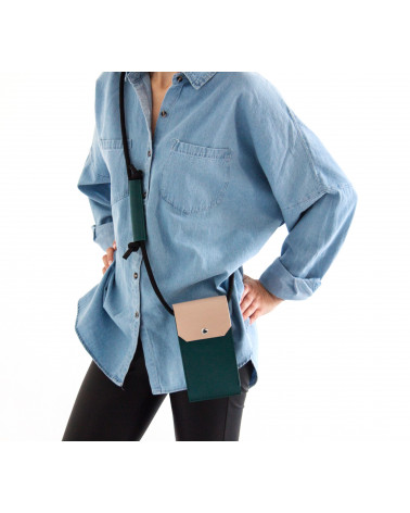 Ми створили цю сумку для порятунку світу. По-перше, це сумка для телефону, що має два відділення. По-друге, вона швидко трансформується у сумочку на талії та надзвичайно витончено її підкреслює. По-третє, більше не доведеться довго та нервово шукати телефон. Він буде поруч та йому там буде затишно. По-четверте, це зручна "друга" сумочка, що буде пасувати до вашої основної сумочки чи наплічника. По-п'яте, цей ремінь-шнур. Він створений для маленьких милих дрібниць, на кшталт кейса для навушників чи гаманця.