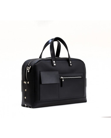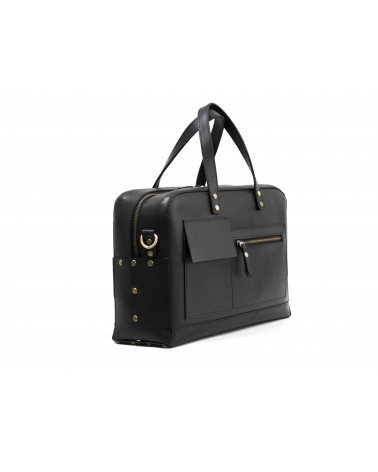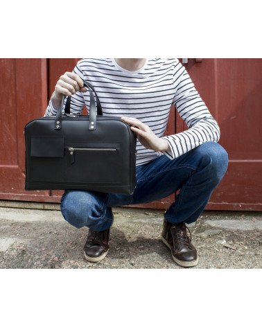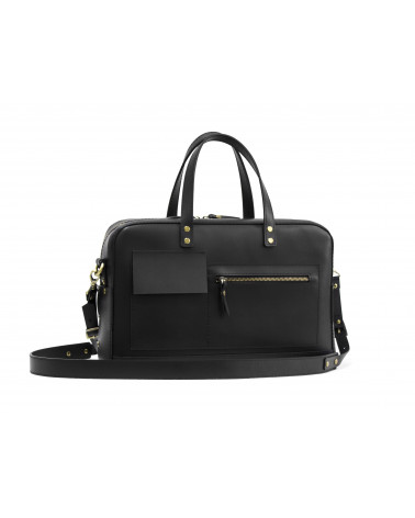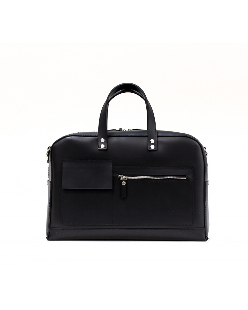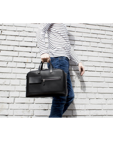 Корпус виготовлено з натуральної шкіри українського виробництва. Основне відділення закривається на блискавку. Всередині портфелю одне відділення, кишеня з фетру для ноутбука та дві кишені для телефону/ключів/павербанку чи зарядного пристрою.
