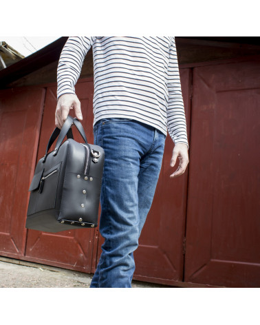Чоловічий портфель для серйозних справ. А ще він класний компаньйон і стійко витримає щоденні подвиги та звитяги. Він зручно вмістить в собі спортивну форму та ноутбук для роботи. Особливе кріплення ручок за допомогою гвинтиків забезпечує особливу вантажомісткість портфелю.