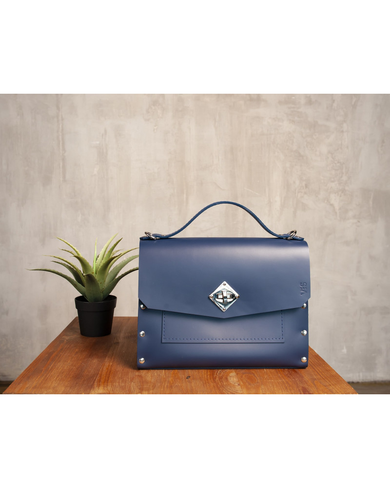 Корпус виготовлено з натуральної шкіри українського виробництва. Основне відділення закривається на кришку-клапан. Всередині - одне відділення, кишенька з фетру для ключів/телефону/дрібниць. Зовні корпус доповнено кишенею зі шкіри, що дозволяє швидко знаходити найнеобхідніше. Розмір сумочки легко вміщує в себе планшет, щоденник чи міні ноутбук. У комплекті є зйомна довга ручка.