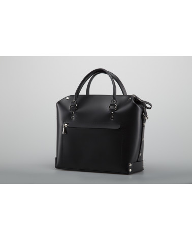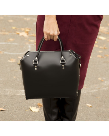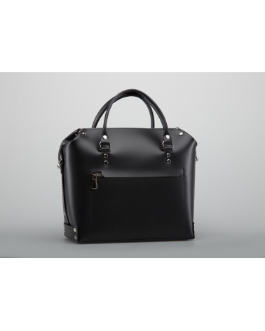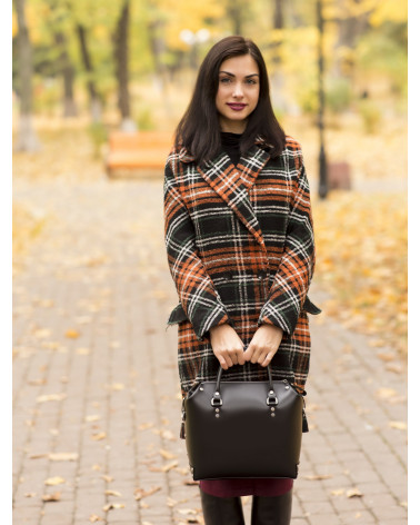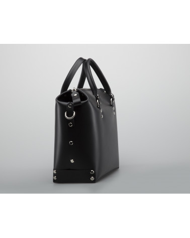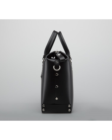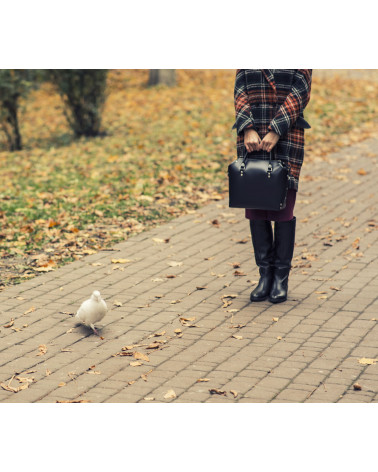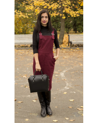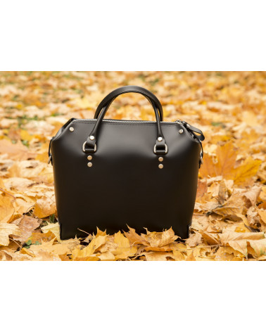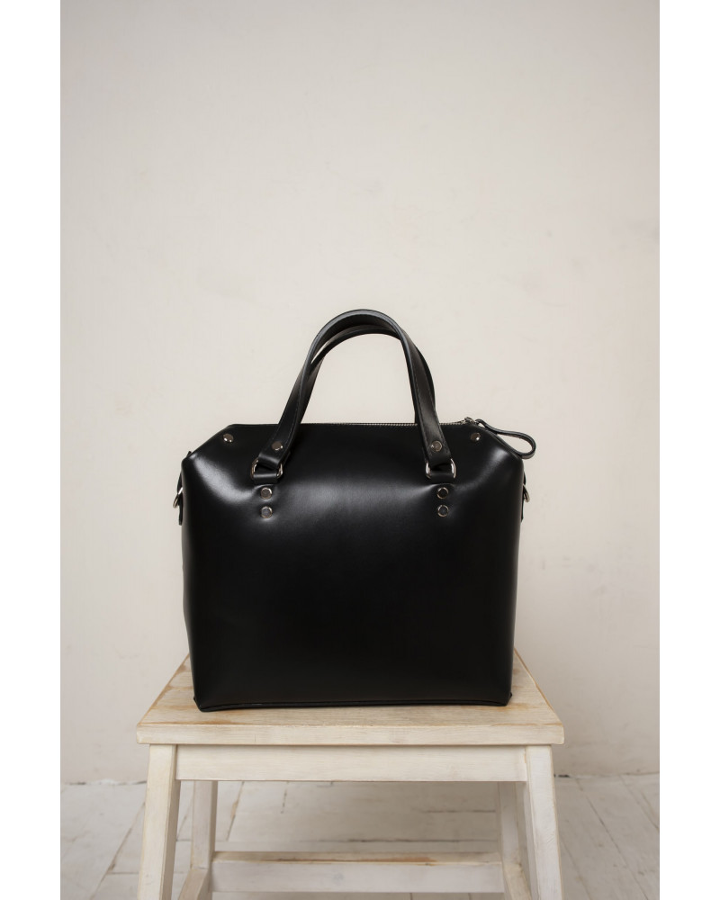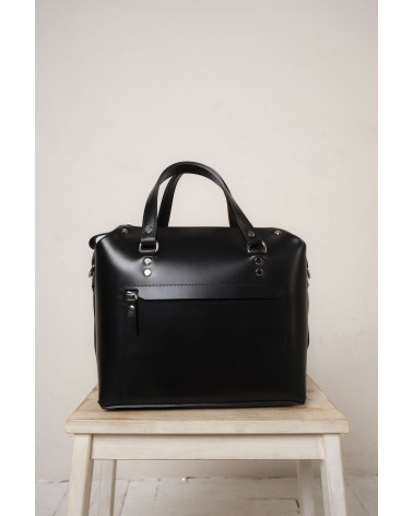 Корпус виготовлено з натуральної шкіри українського виробництва. Всередині одне відділення та кишенька з фетру для ключів/телефону. Зовні корпус сумочки доповнено кишенею на блискавці, що дозволяє швидко знаходити різні корисні дрібнички. У комплекті є зйомна довга ручка. За бажанням вона може бути виготовлена повністю зі шкіри чи у поєднанні з ланцюжком.