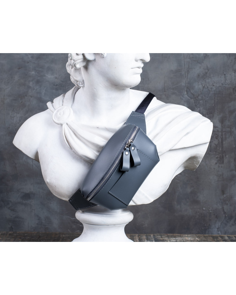 Корпус виготовлено зі шкіри українського виробництва. Основне відділення закривається на кришку-клапан, кнопку та блискавку. Всередині сумочки одне відділення та кишенька з фетру для документів, ключів та різних дрібниць. Зовні сумочка доповнена ременем зі щільної стрічки. Довжину ременю можна регулювати, щоб зручно носити сумочку на талії чи crossbody. Особливістю стрічки для ременя є також ще те, що вона абсолютно не ковзає. Тому регулювання-перетягування стрічки буде зручніше робити двома руками. Однак, це завадить самовільному ковзанню, розтягуванню ременю під вагою сумочки. Ми використовуємо металевий фастекс (замок).