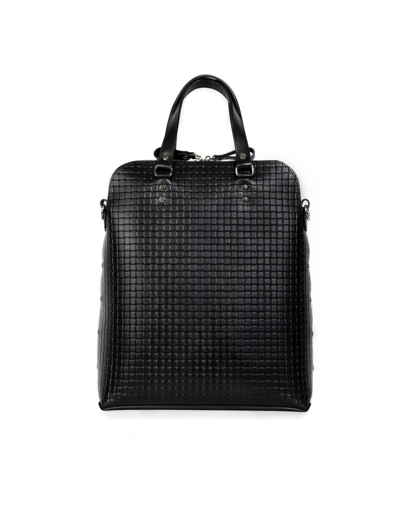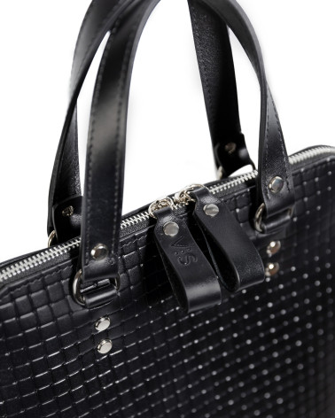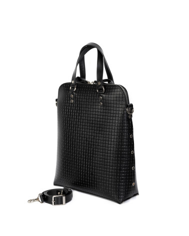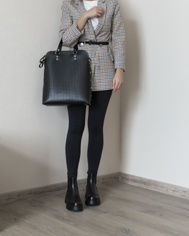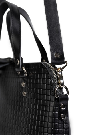 На фото Беллатрікс:сумка у чорному кольорі та у поєднанні чорної гладкої та структурної шкіри.