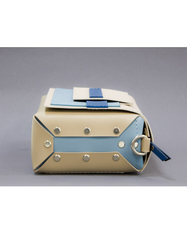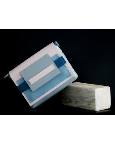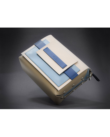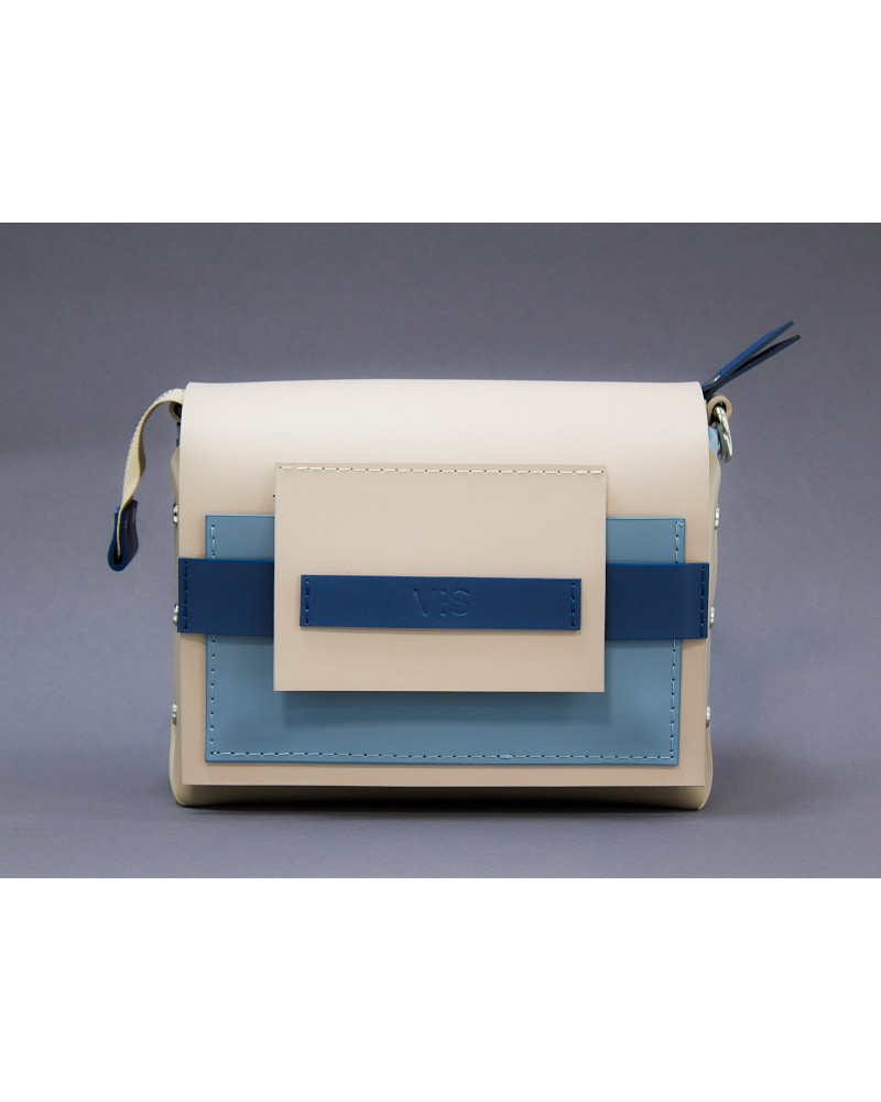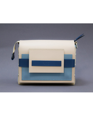 На фото Саїф:портфель у поєднанні синього, блакитного та бежевого кольорів.