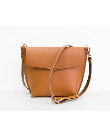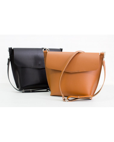 Корпус виготовлено з натуральної шкіри українського виробництва. Основне відділення закривається на кришку-клапан та магніт. Всередині сумочки одне відділення та кишенька з фетру для дрібничок. У комплекті є довга ручка, яка дозволяє носити сумочку на плечі чи crossbody. Розмір дна 20*9 см. Висота 21 см. Модель Ліра:сумка може бути виготовлена в одному з кольорів з нашої палітри, а також у поєднанні кольорів.