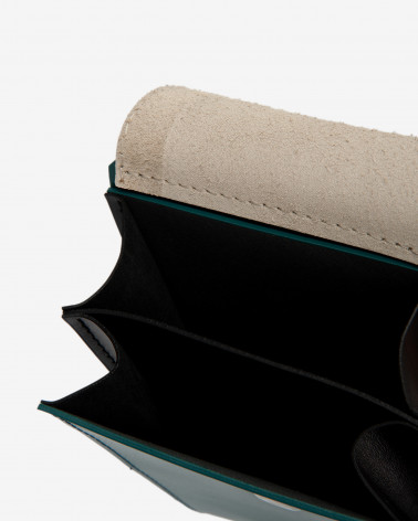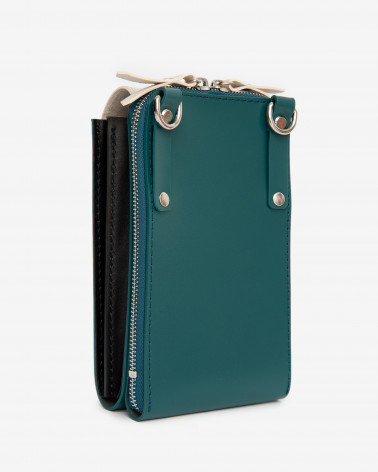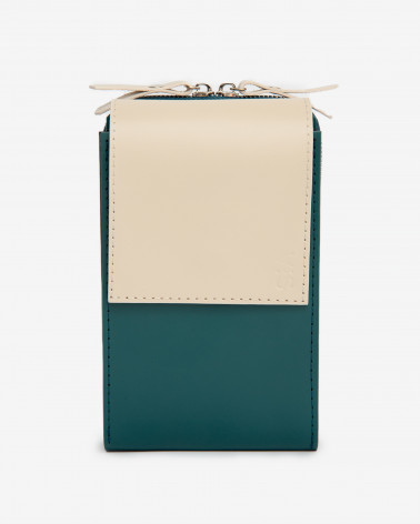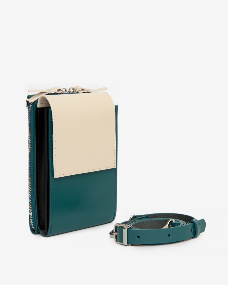 Корпус виготовлено зі шкіри українського виробництва. Основне відділення закривається на блискавку. Всередині сумочки три відділення та таємна кишенька для дрібничок. Ззовні модель доповнено зручною кишенею на блискавці. Модель Ексліпс:сумка створена, як варіація сумки для телефону. Тому, залежно від розміру вашого телефону, його можна зручно розміщувати у зовнішній кишені чи в основному відділенні сумки. За допомогою спеціальних кріплень на зворотньому боці сумочки, її можна носити на талії.