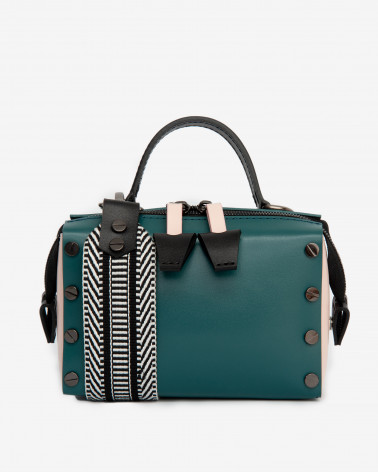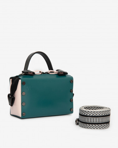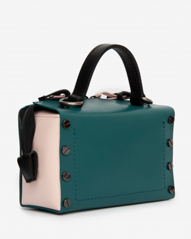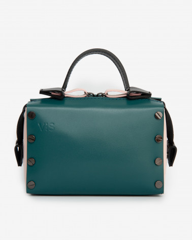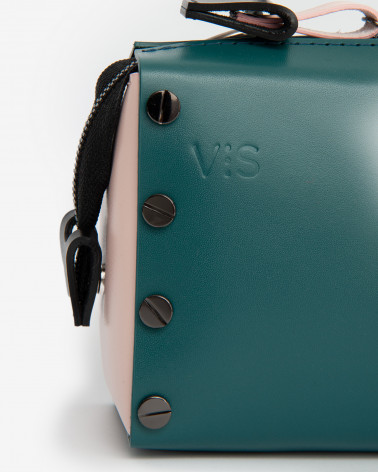 На фото поєднання смарагдового, пудрового та чорного кольорів.