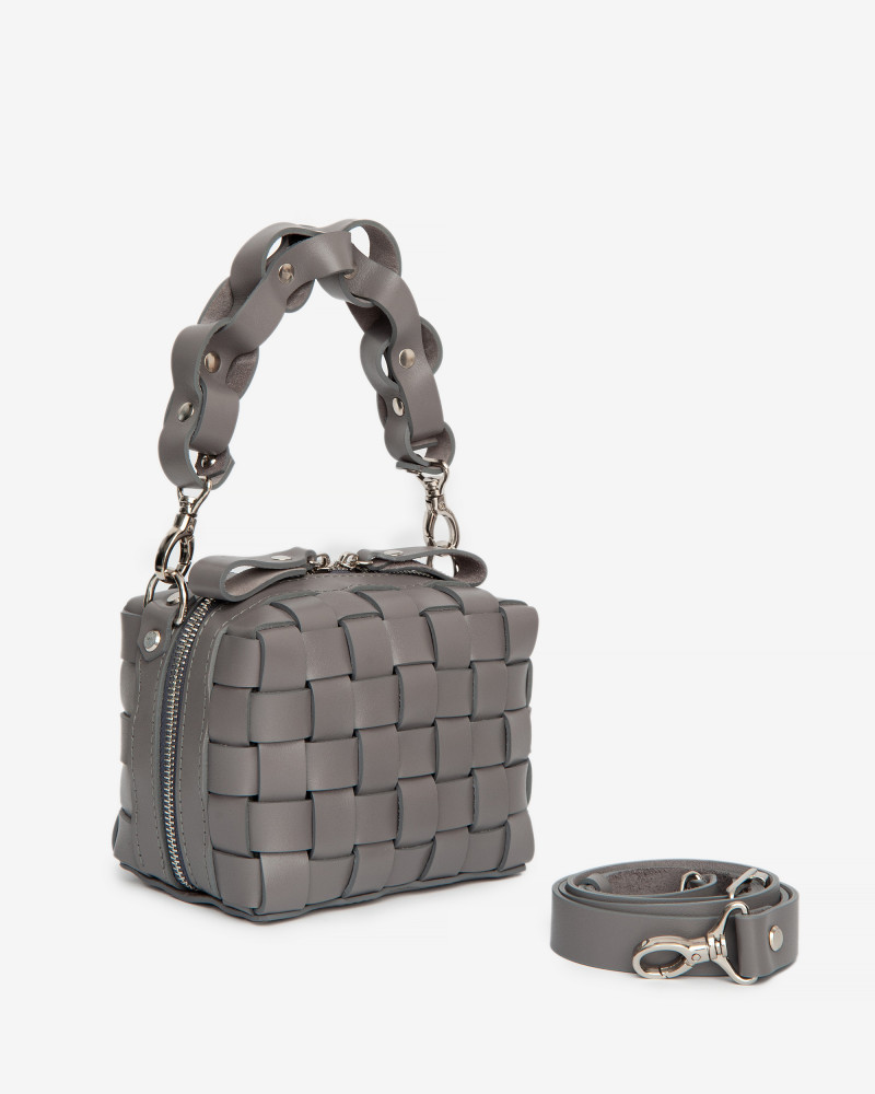Корпус сумочки виготовлено з натуральної шкіри українського виробництва. Кожна готова модель Фрейя:сумки унікальна по-своєму, оскільки виконана шляхом ручного плетіння.