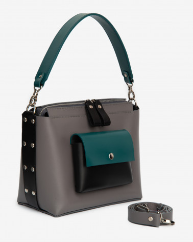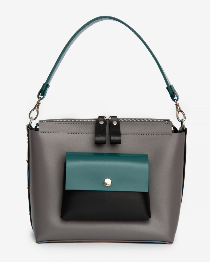 На фото Аврора:сумка у поєднанні сирого, смарагдового та чорного кольорів. Дизайн замка на зовнішній кишені може відрізнятися.