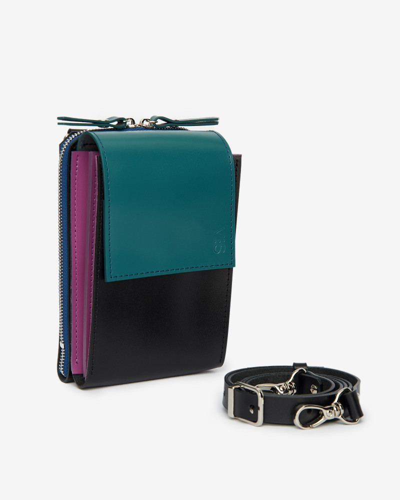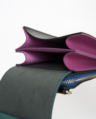 На фото Екліпс:сумка у поєднанні чорного, смарагдового та кольору аметист (пурпурний).