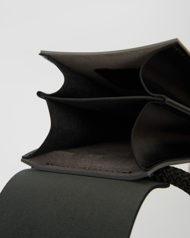 Ми створили цю сумку для порятунку світу. По-перше, це сумка для телефону, що має два відділення. По-друге, вона швидко трансформується у сумочку на талії та надзвичайно витончено її підкреслює. По-третє, більше не доведеться довго та нервово шукати телефон. Він буде поруч та йому там буде затишно. По-четверте, це зручна "друга" сумочка, що буде пасувати до вашої основної сумочки чи наплічника. По-п'яте, цей ремінь-шнур. Він створений для маленьких милих дрібниць, на кшталт кейса для навушників чи гаманця.