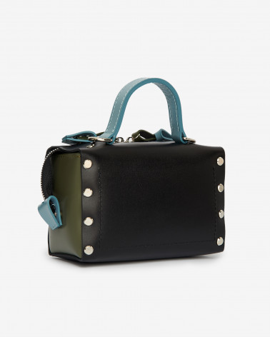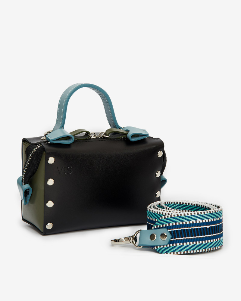На фото поєднання чорного, блакитного та оливкового кольорів.