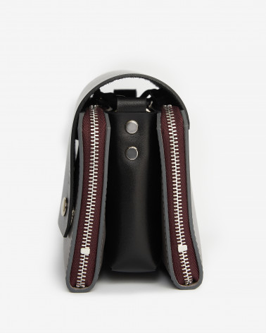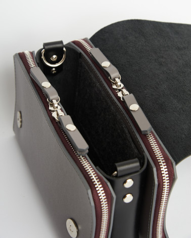 Корпус виготовлено з натуральної шкіри українського виробництва. Основне відділення закривається на кришку-клапан та магніт. Всередині сумочки три відділення та кишенька з фетру для ключів/телефону/дрібничок.