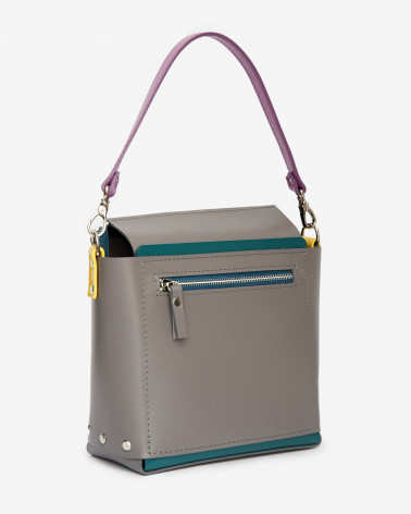 На фото Несо:сумка у поєднанні сірого, смарагдового, фуксії та жовтого.