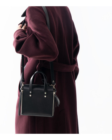 Корпус виготовлено зі шкіри українського виробництва. Основне відділення закривається на блискавку. Всередині сумочки одне відділення, підклад з фетру та дві кишеньки для дрібничок.