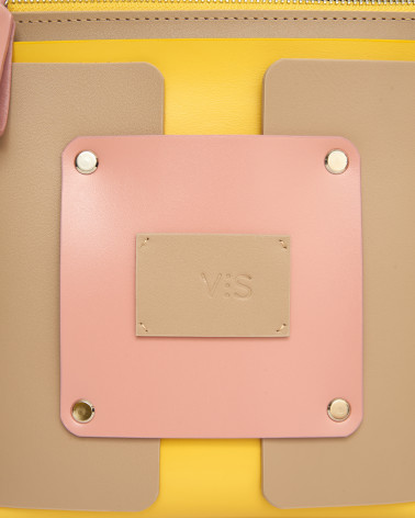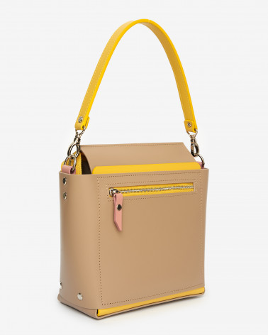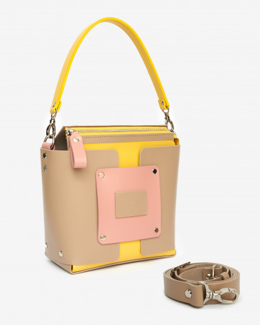 На фото Несо:сумка у поєднанні бежевого, жовтого та рожевого кольорів.