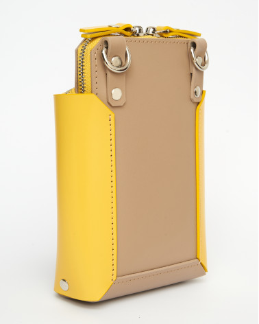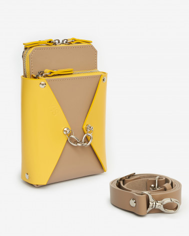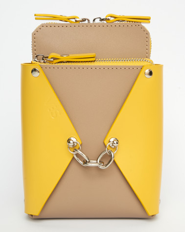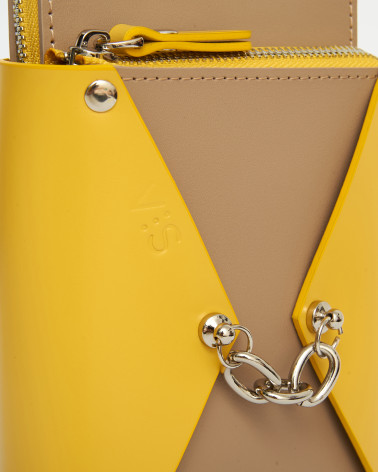 На фото Талія:сумка у поєднанні жовтого та бежевого кольорів.
